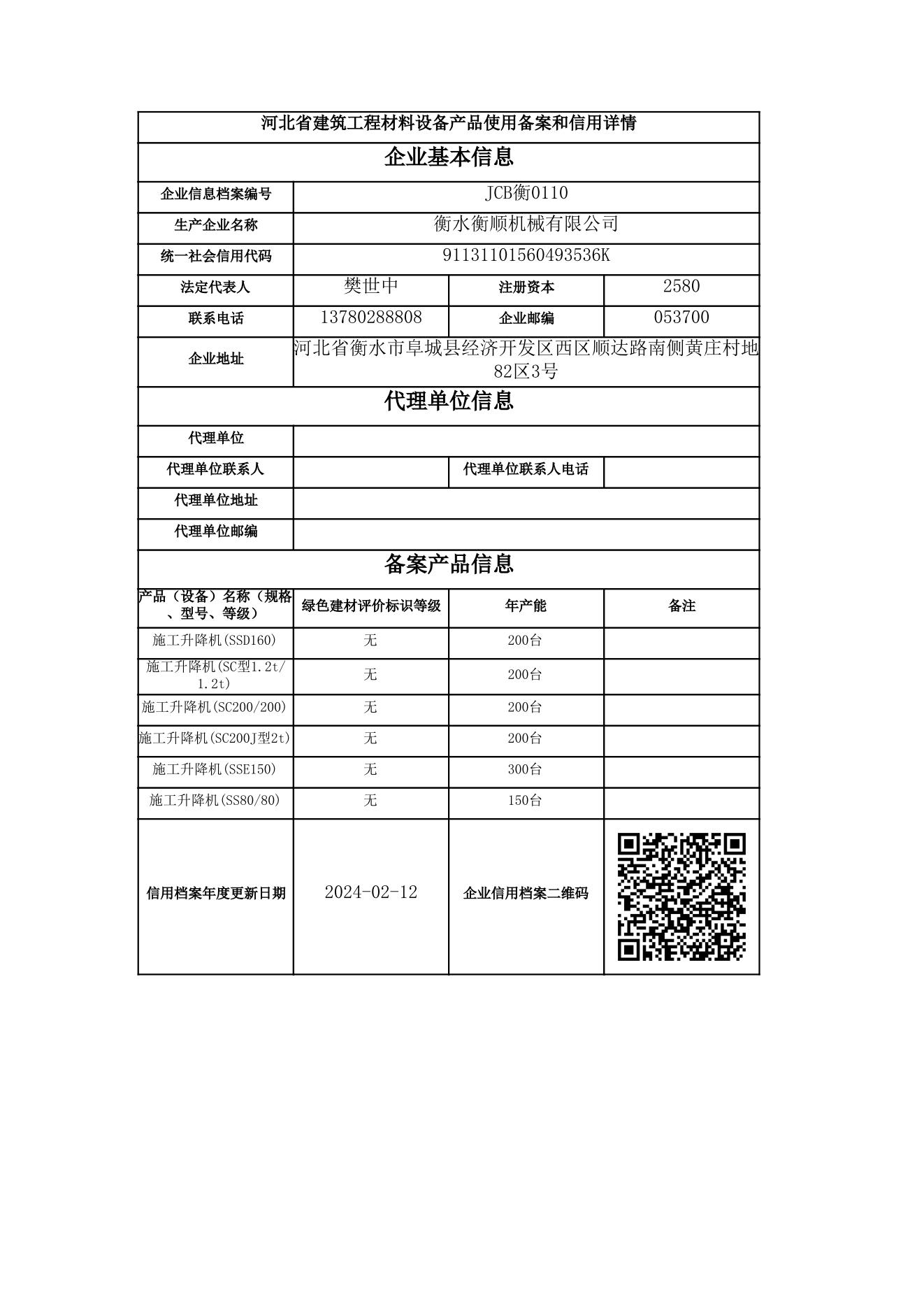 衡水衡順機械有限公司是生產SC200/200施工升降機、SC1.2t/1.2t施工升降機、SSE150施工升降機、SS80/80施工升降機 、施工升降機配件等建筑機械的廠家。